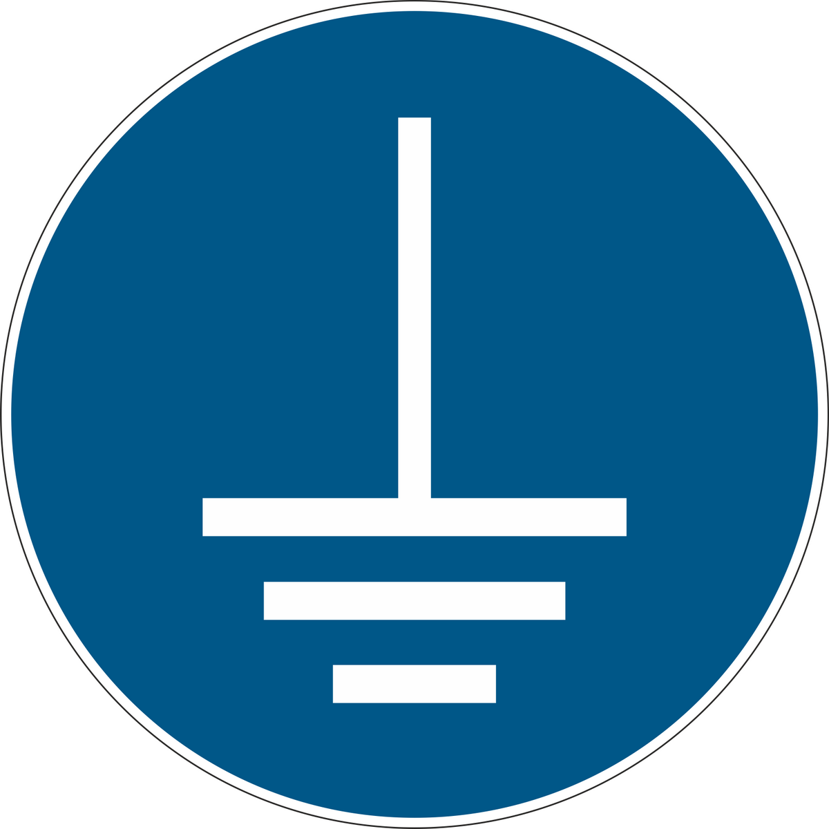 Gebotsschild "Verbinden mit einer Erdklemme am Boden"