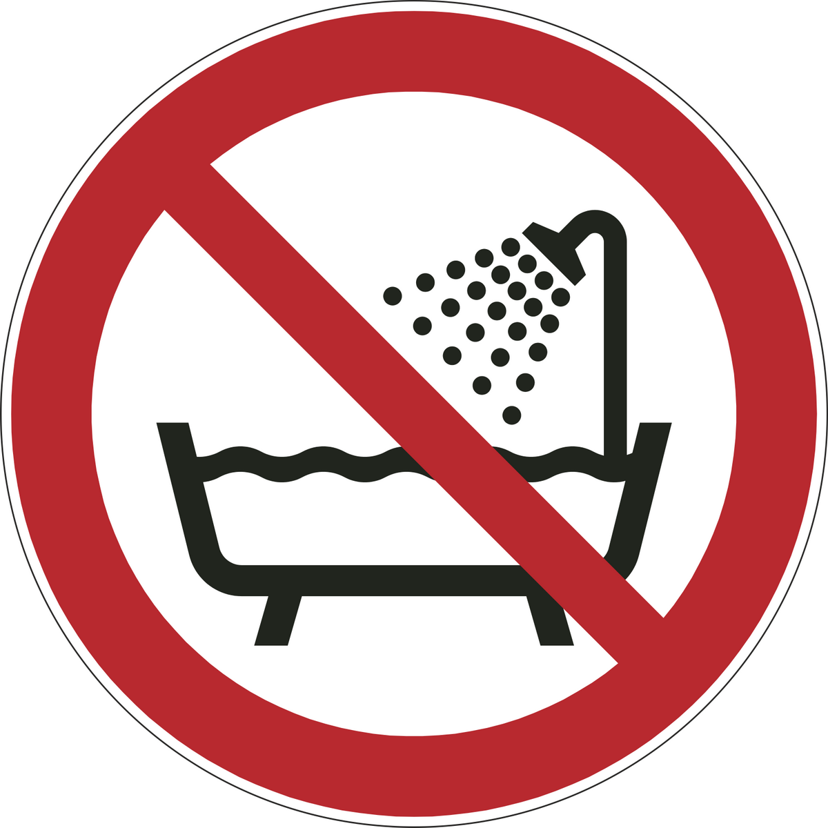 Verbotsschild "Verbot, dieses Gerät in der Badewanne, Dusche, Wasser zu benutzen"