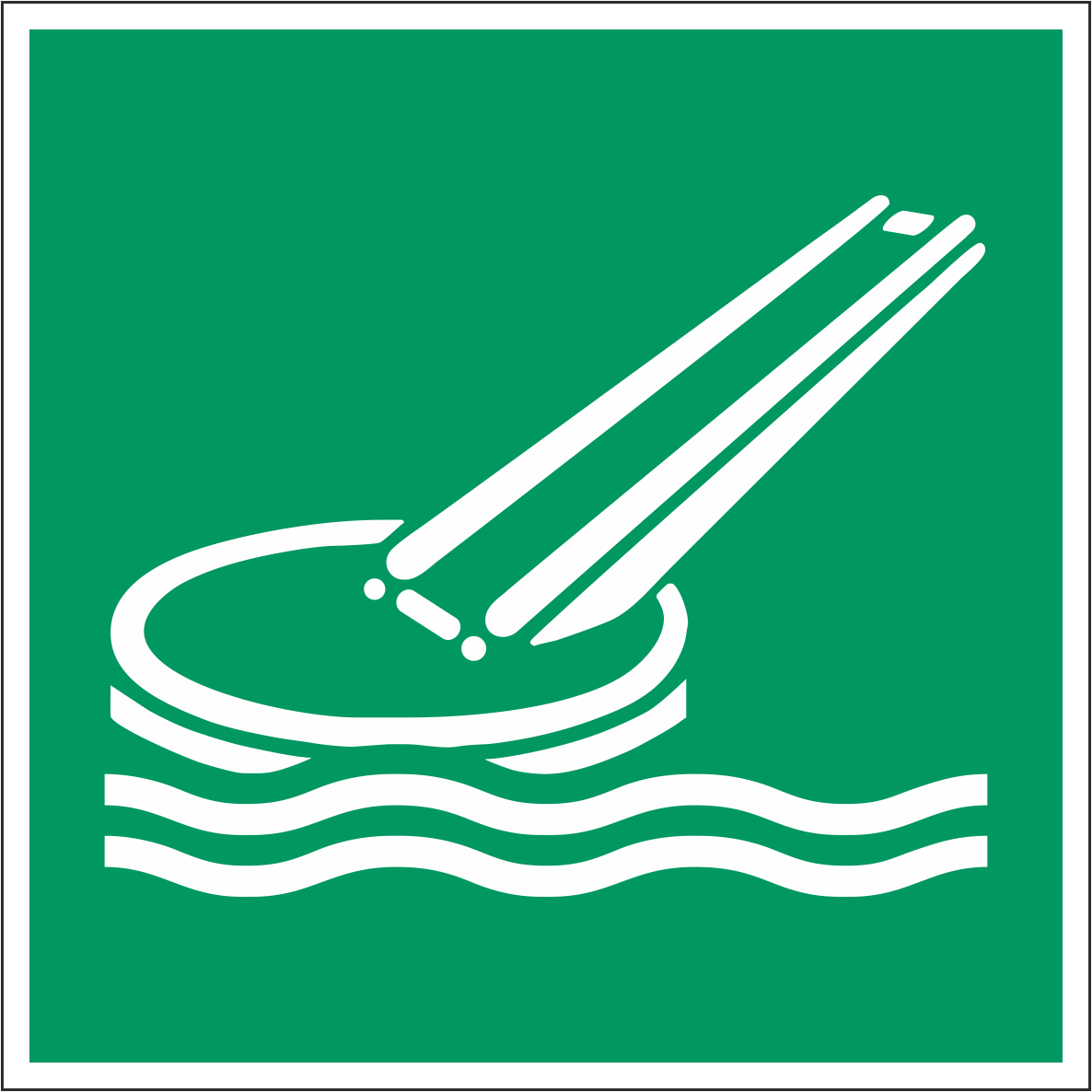 Rettungszeichen-Schild "Offene Rutsche für Schiffsevakuierung"