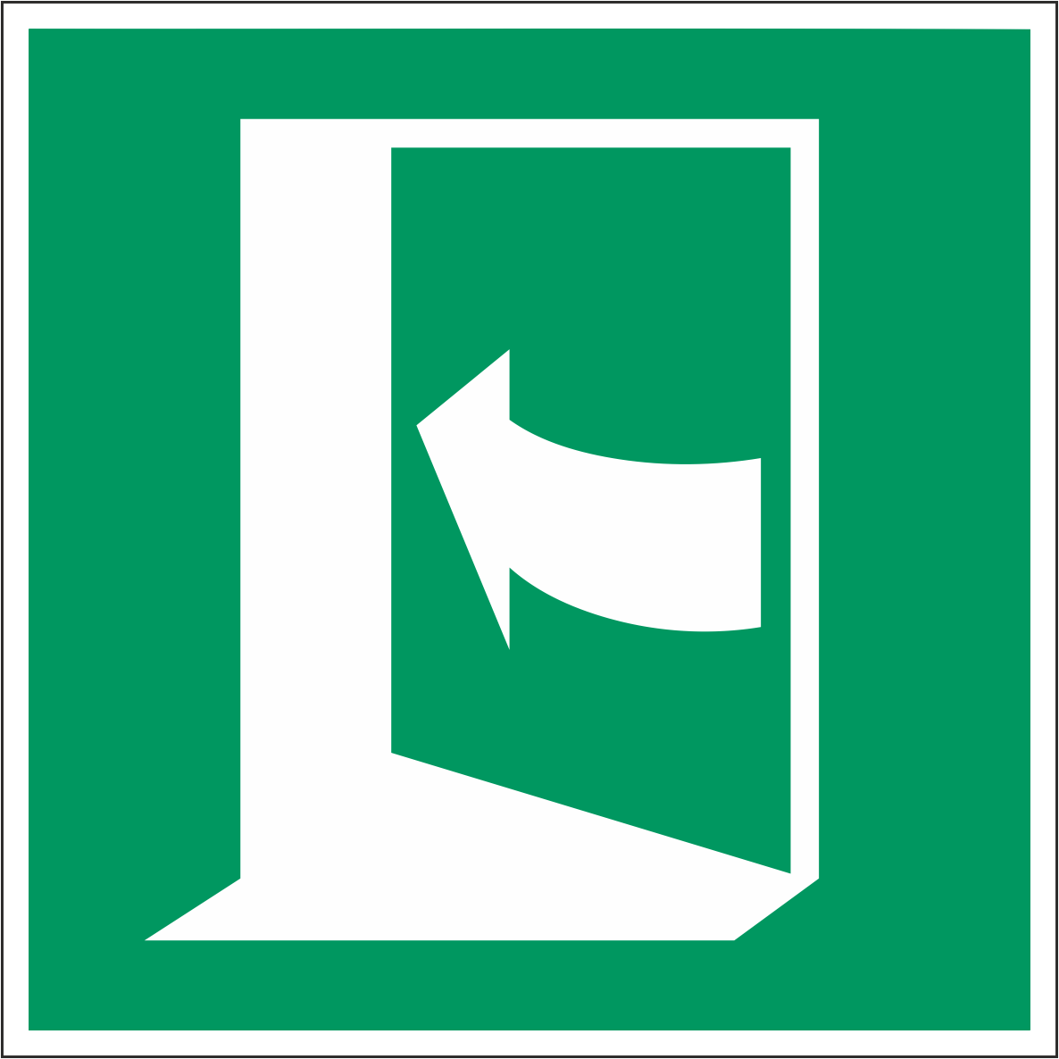 Rettungszeichen-Schild "Tür öffnet auf der linken Seite"