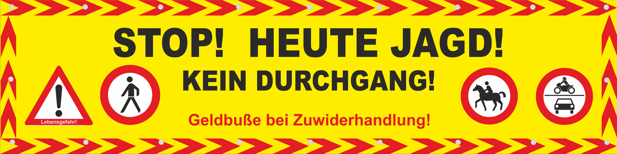 Absperrbanner "STOP! HEUTE JAGD!" Gelb mit Verbotszeichen