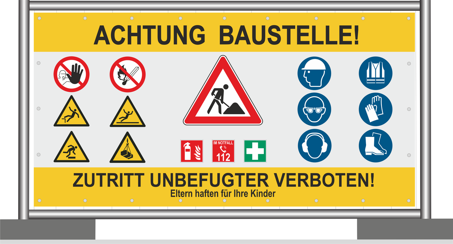 Baustellenbanner "ACHTUNG BAUSTELLE" - mit Symbolen nach DIN 7010