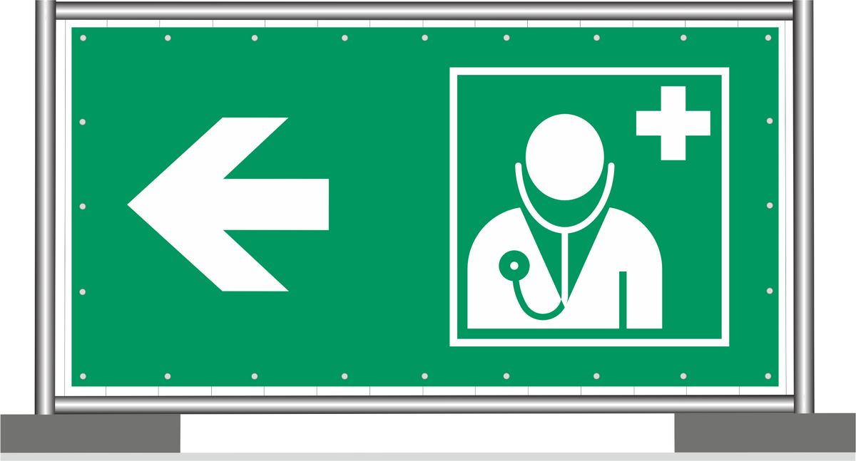 Sicherheit und Gesundheitsschutz sind oberstes Gebot auf jeder Baustelle, in Betriebsstätten oder auch auf großen Events, Sportveranstaltungen, Konzerten ect. Wir bieten Ihnen diverse Vorlagen und Motive für Banner mit Rettungszeichen zur Wahl.
