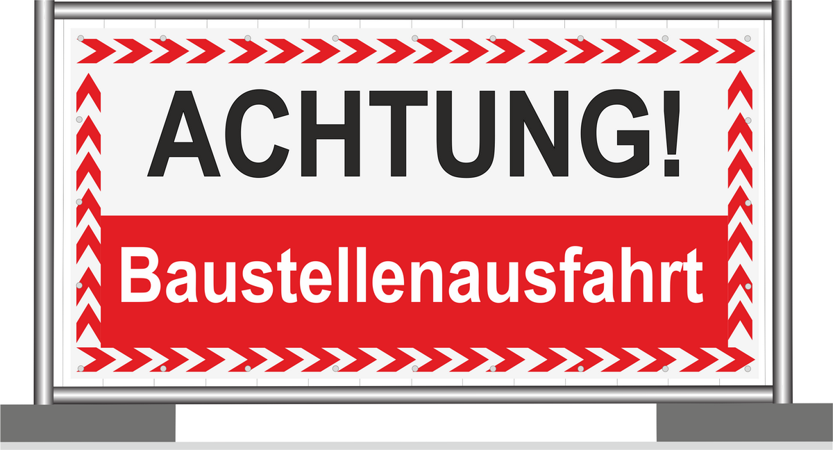 Bauzaunbanner "ACHTUNG BAUSTELLENAUSFAHRT"