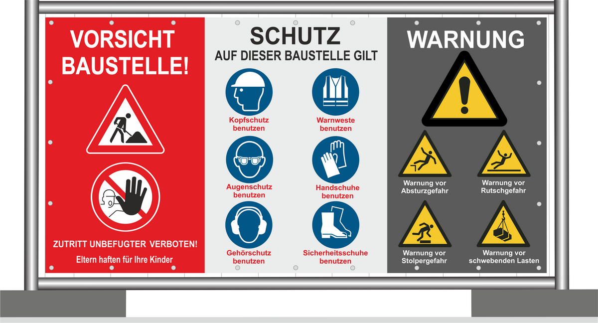 Baustellenbanner "ACHTUNG BAUSTELLE" DIN ISO 7010