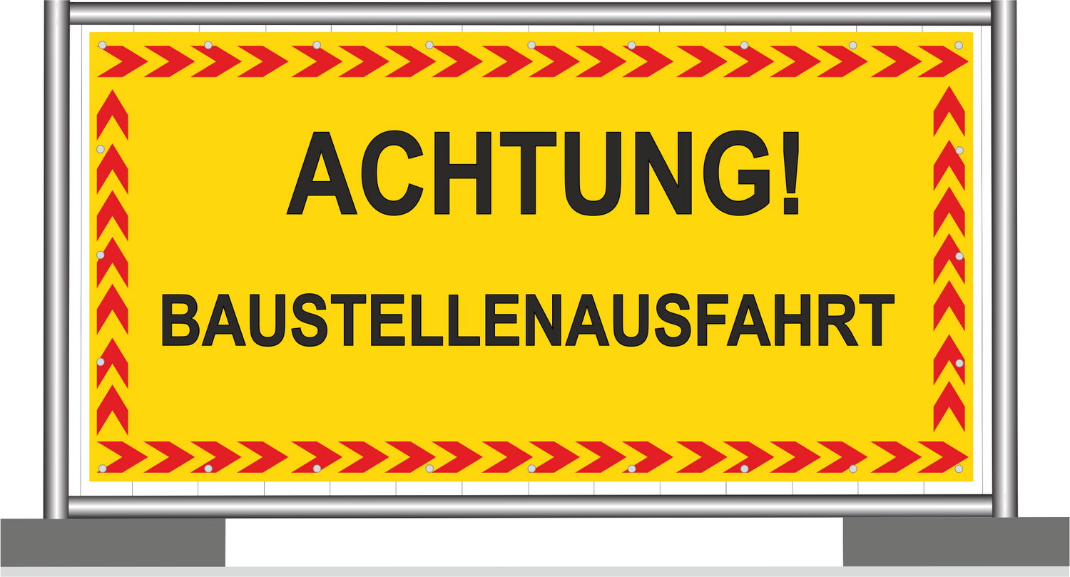 Baustellenbanner "BAUSTELLENAUSFAHRT ACHTUNG"