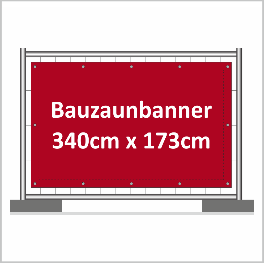 Bauzaunbanner 340cm x173cm mit Randverstärkung und Ösen umlaufend
