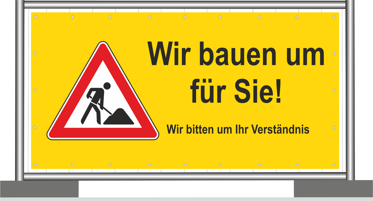 Bauzaunbanner Achtung Baustelle wir bauen für sie um