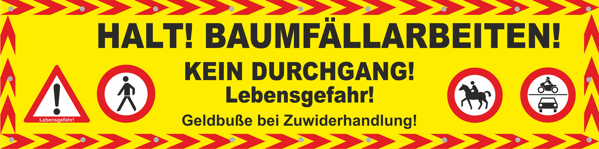 Forst Absperrbanner "HALT! BAUMFÄLLARBEITEN" kein Durchgang