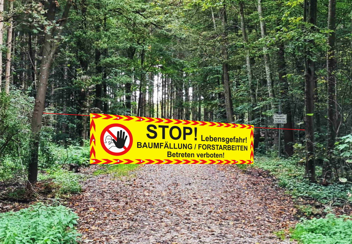 Forst Absperrbanner "STOP! BAUMFÄLLUNG FORSTARBEITEN" Betreten verboten