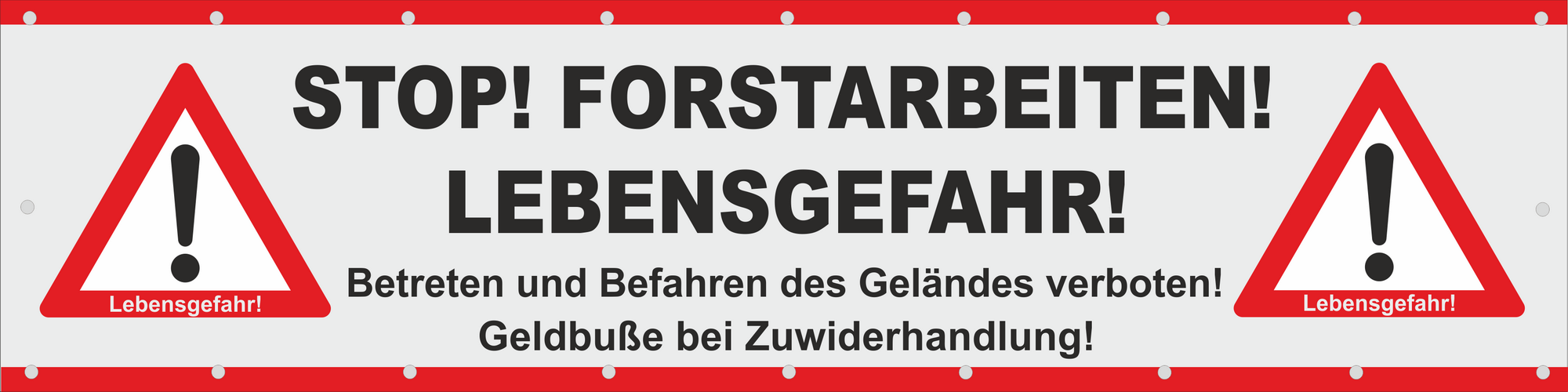 Wir bieten Ihnen für diesen Einsatzzweck Forst Absperrbanner und Forst Hinweisbanner mit diversen Vorlagen und Motiven an.