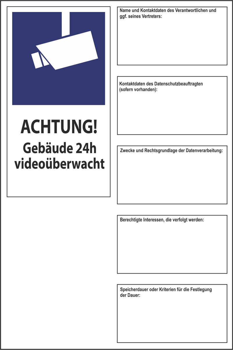 Hinweisschild "ACHTUNG Gebäude videoüberwacht" nach DIN und DSGVO