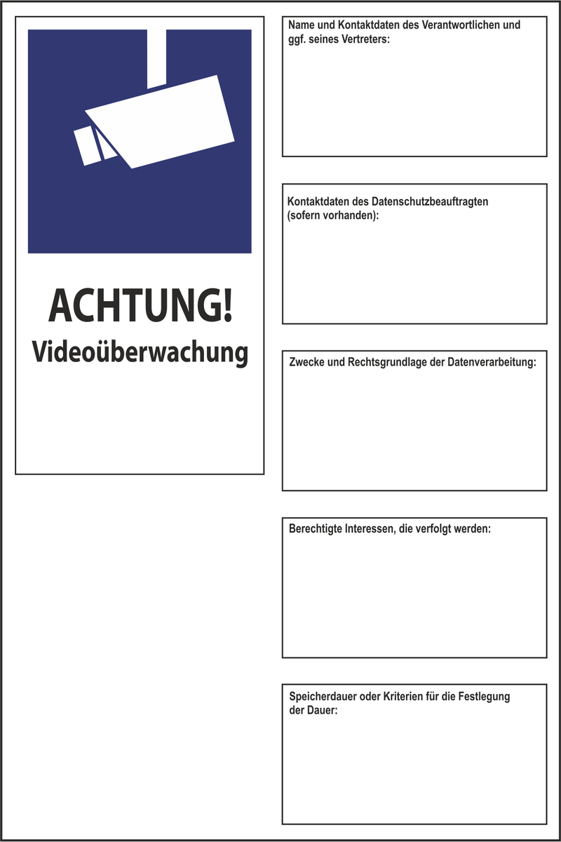Hinweisschild "ACHTUNG VIDEOÜBERWACHUNG" nach DIN und DSGVO