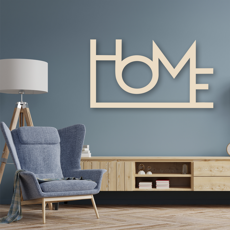 Ansprechende Wanddekoration aus Holz als Schrifzug Motiv "HOME"