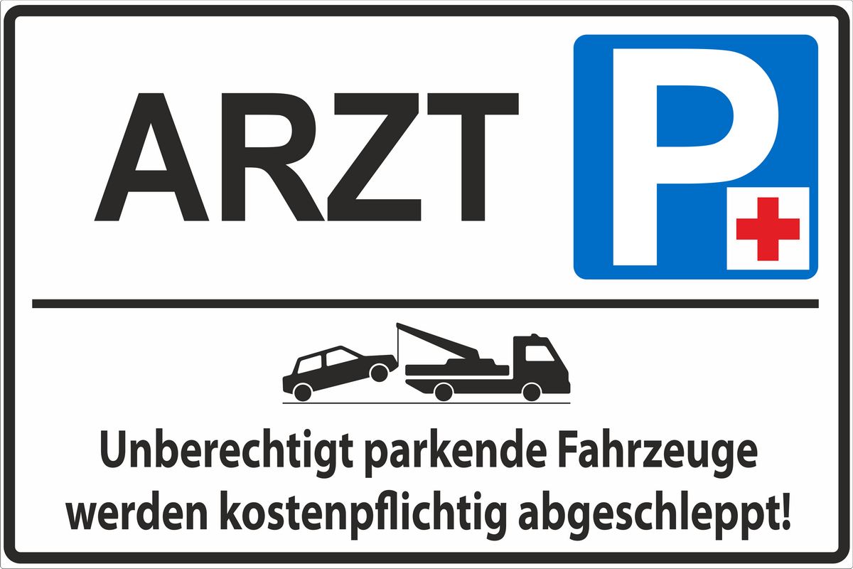 Preview: Parkplatzschild  Arzt-unberechtigt parkende Fahrzeuge werden kostenpflichtig abgeschleppt