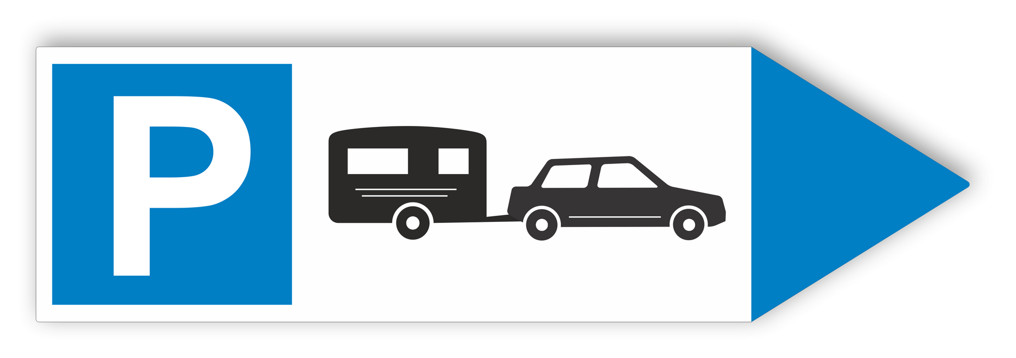 Pfeilschild " PARKPLATZ " PKW mit Anhänger