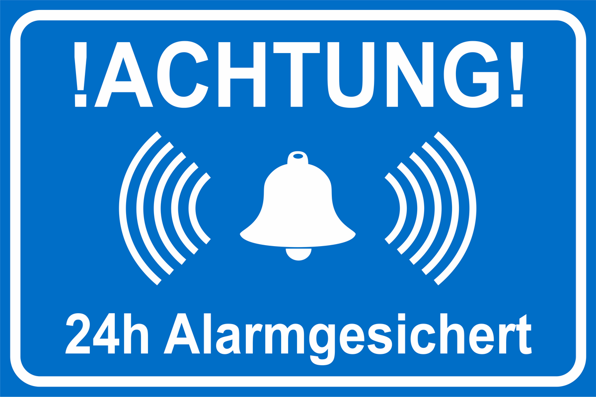 Dieses Hinweisschild Achtung 24 Stunden Alarmgesichert wird aus hochwertigem Alu-Kunststoff-Verbundmaterial oder Hart-PVC gefertigt, sind witterungs- und UV beständig. Diese Materialien sind sowohl für den Innen- und Aussenbereich einsetzbar.