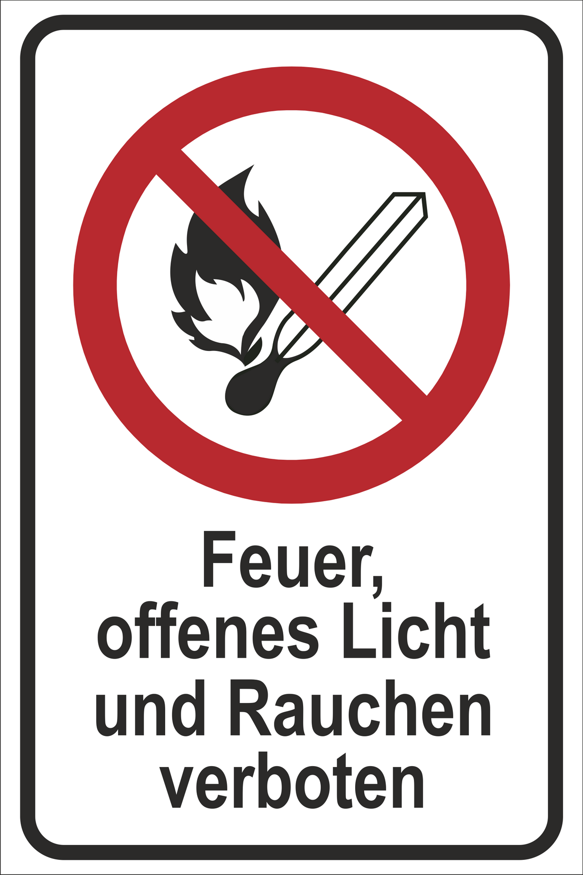 Kombischild Verbotszeichen "Feuer, offenes Licht und Rauchen verboten"