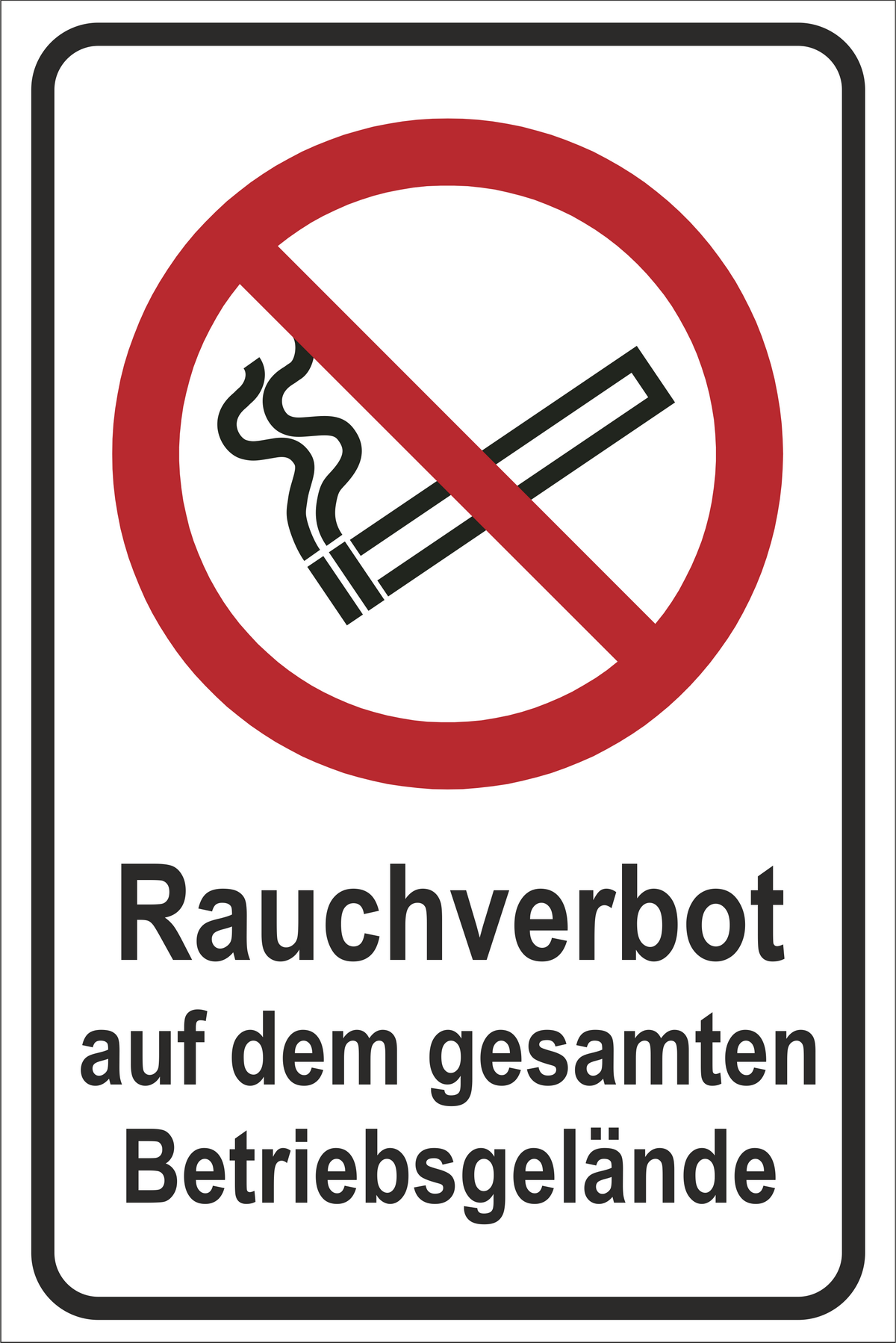 Verbotszeichen-Schild "Rauchverbot auf gesamten Betriebsgelände"