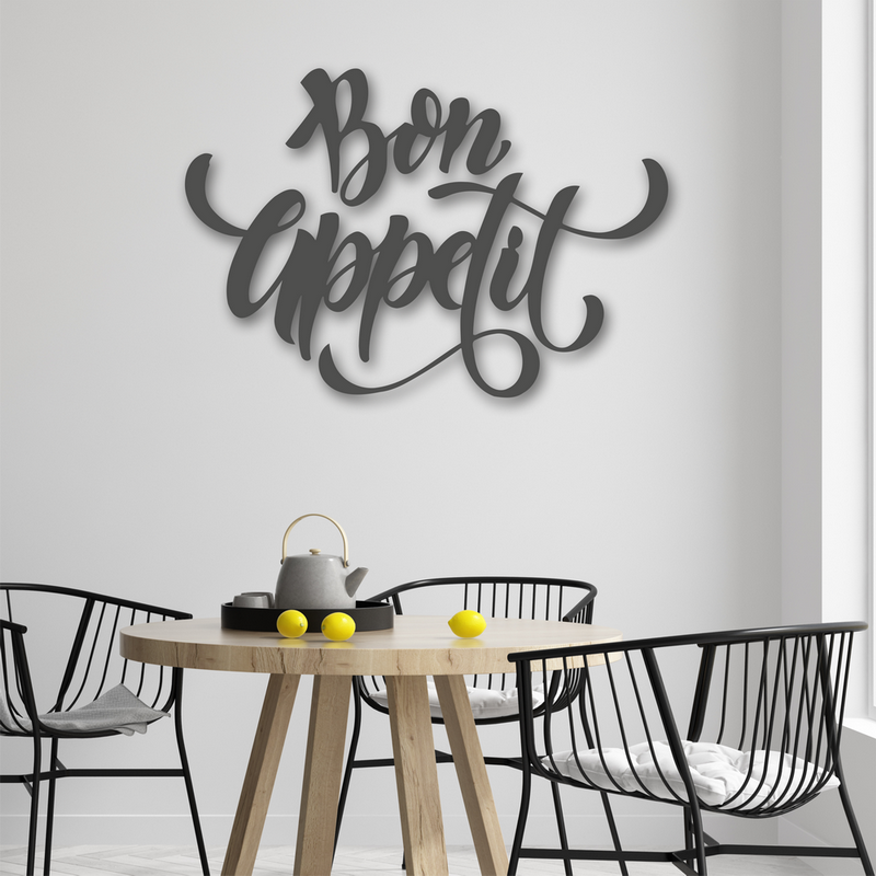 Hübsche Wanddekoration aus Holz als Schrifzug "BON APPETIT"