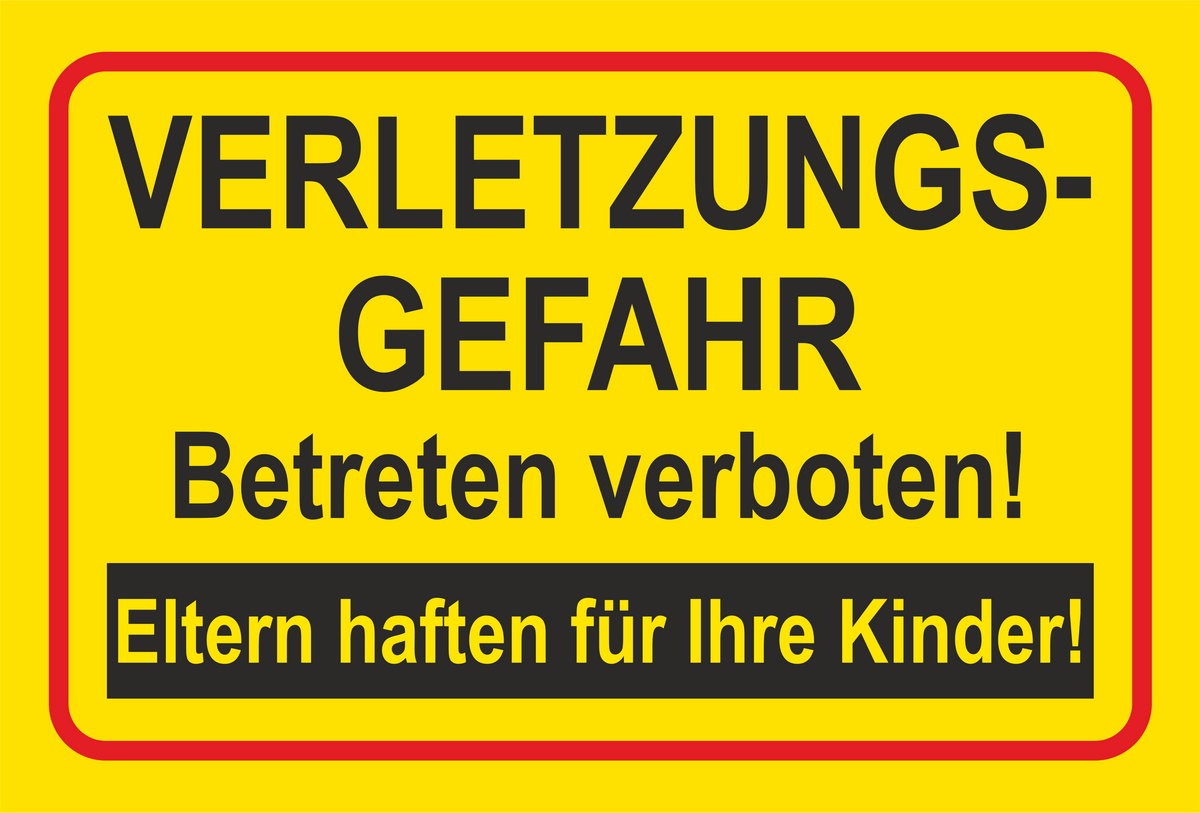 Warnschild Verletzunggefahr betreten verboten im Querformat ab 30cm x 20cm