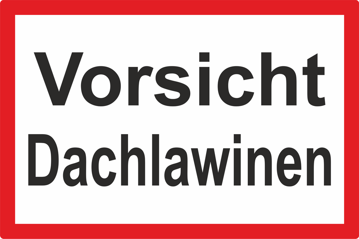 Warnschild im Querformat mit roter Außenkontur und Text Vorsicht Dachlawinen